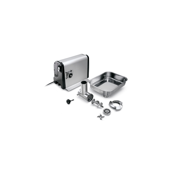 – Bouche et hélice hache-viande en alliage alimentaire brillanté.