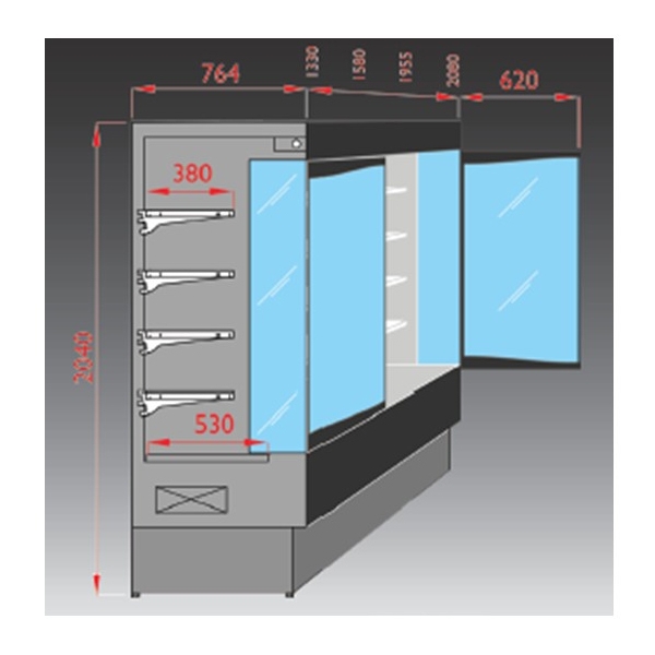 Dimensions en mm : 1330 x 76.4P x 2040 H