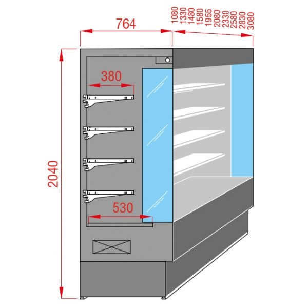 Dimensions en mm : 1580 x 800P x 2040 H