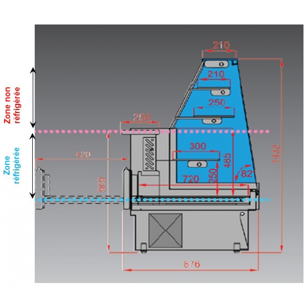 Vitrine réfrigérée à tiroirs 100 cm vitre droite inclinée