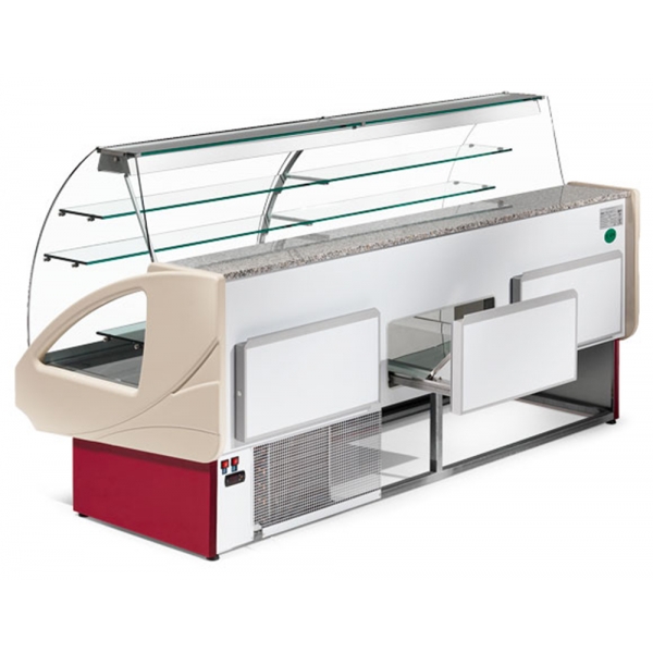 Cuve d`exposition profondeur 820mm en acier inox à Tiroirs coulissants.