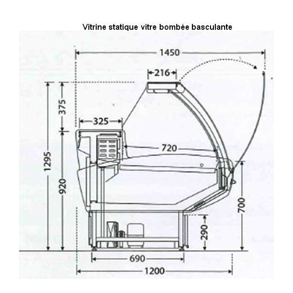 Caractéristiques Techniques vitrine réfrigérée statique 370 cm vitres bombées basculantes